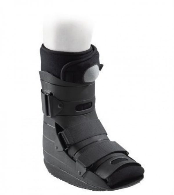 Almohadilla envolvente de fibra transpirable para pierna, pie y tobillo, placas de protección tibial y de pantorrilla. Suela de perfil bajo en forma de balancín antideslizante. Es casi igual al walker fijo prostep pero más corto. El uso de un walker más largo o más corto debe ser decidido por el médico especialista.